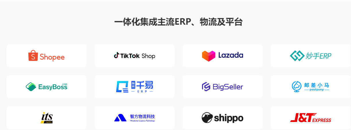 TOPWMS已实现与Shopee\TikTok Shop\Lazada等主流电商平台、妙手ERP\EasyBoss ERP等管理系统及J&T\Shippo\邮差小马等物流商的实时对接。可实现订单数据同步,订单处理时效提升80%,物流信息自动上网,消除信息断层。