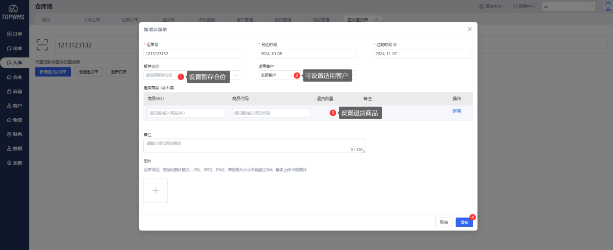 在海外仓最头疼的退货入库环节,TOPWMS通过“仓库端主动创建退货单+卖家端主动推送退货单+仓库端创建认领单” 模式,双向打通退货信息链路,高效解决信息滞后问题,降低库存滞留成本,减少损失。