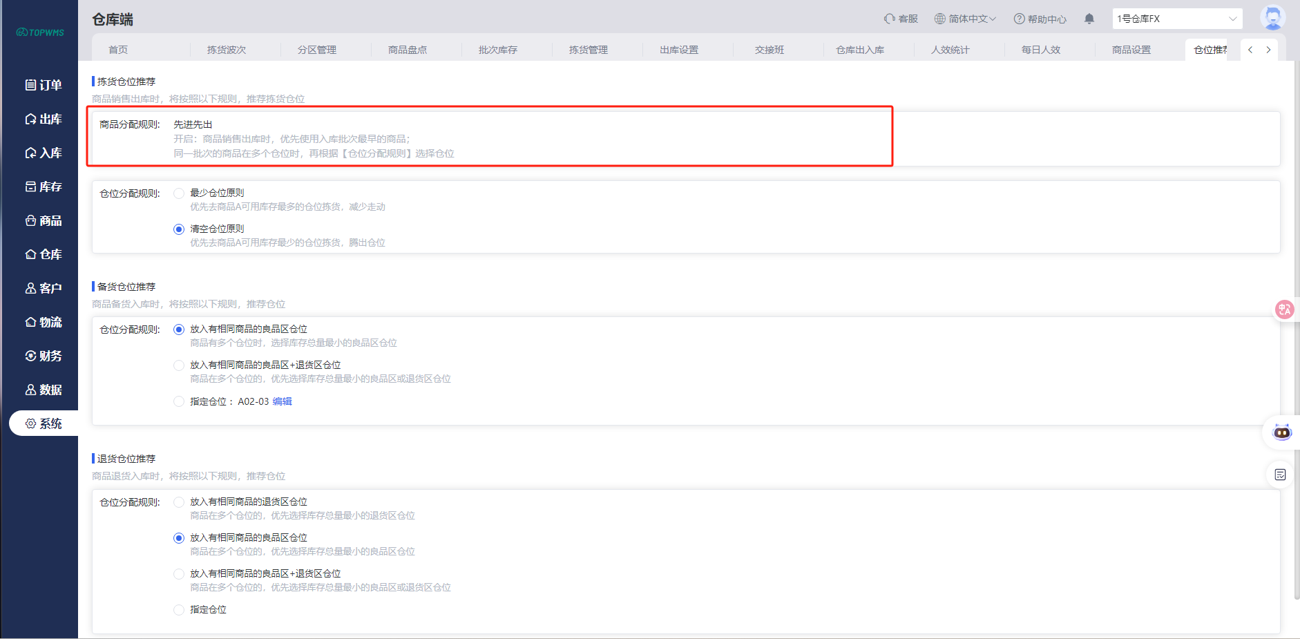 通过TOPWMS,海外仓可实现先进先出,通过这个规则可有效降低呆滞库存。结合分区功能,快速处理残次品、过期产品、退货商品,降低库存直流成本。