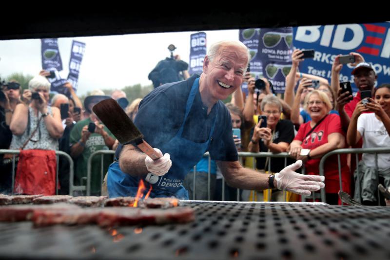 图:美国民主党总统候选人拜登21日在艾奥瓦州参加煎牛排募款大会\法新社