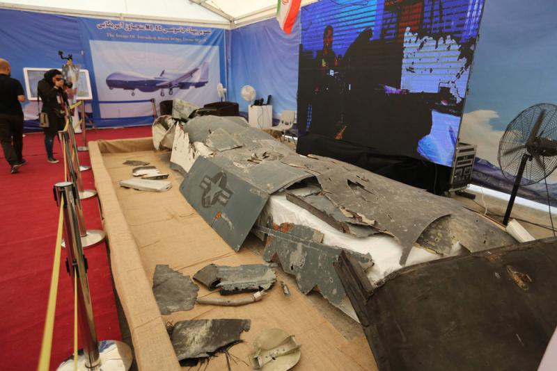 图:伊朗军方21日在德黑兰展出近期击落的美国无人机残骸\法新社